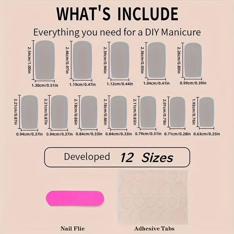 24pcs Square Press-On Nails, Purple Floral & White Floral Design, Medium Length, Glossy