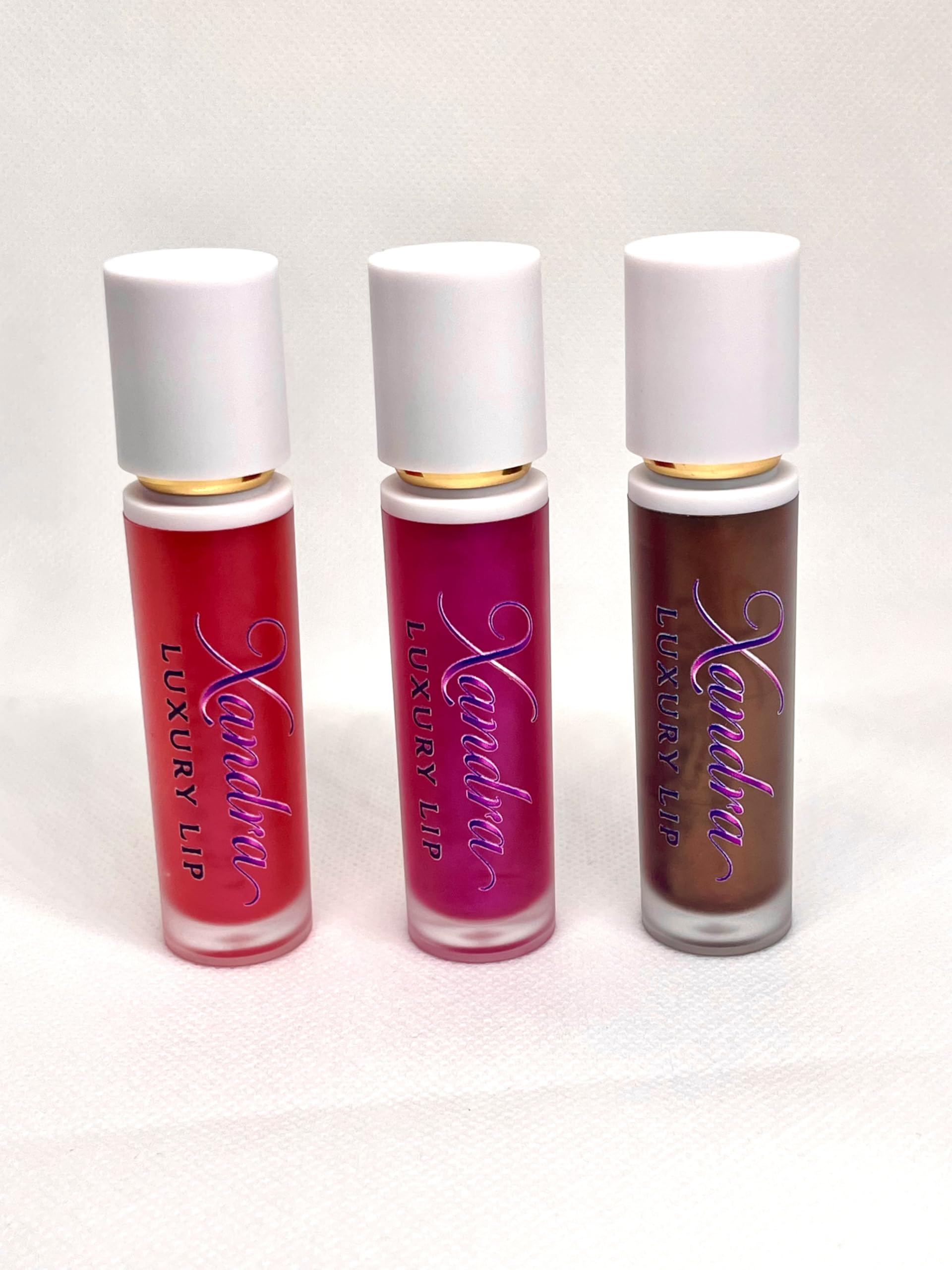 Xandra luxury Lipgloss Fruit Flavored Lip Gloss - Lipstick in Red, Purple & Brown - Makeup Cosmetic